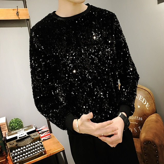 2018 new Gold Youth Hip-hop Paillette t shirt men Sequin embroidery t-shirt summer top Costume party dress Free shipping