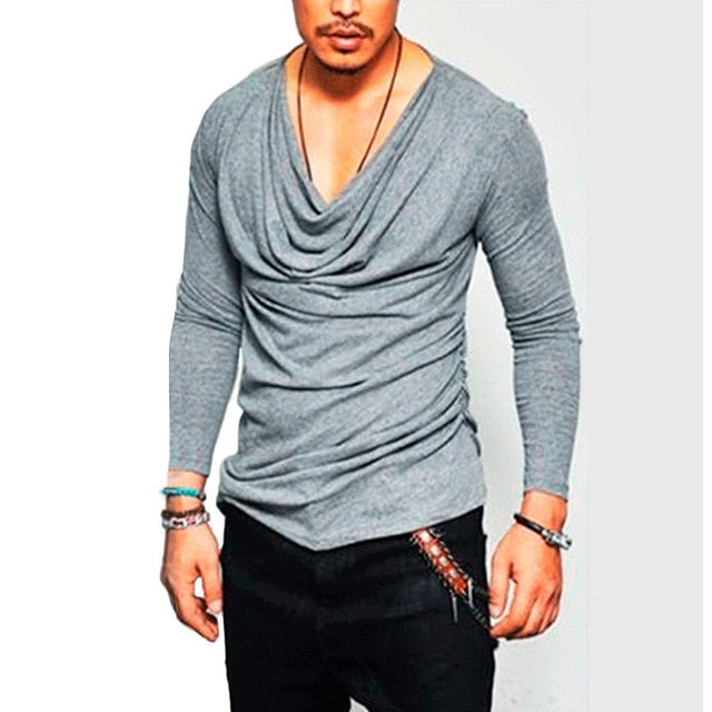 IceLion 2018 New Spring T shirt Men Fashion Fold Design Solid T-shirt Long Sleeve Hip Hop Streetwear Slim Fit Men's Tshirt Tops