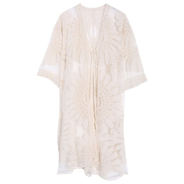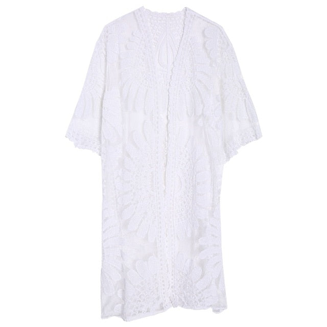 1Pc Women Beach Cover Up Floral Embroidery Swimwear Women Robe Cardigan BathingSuit