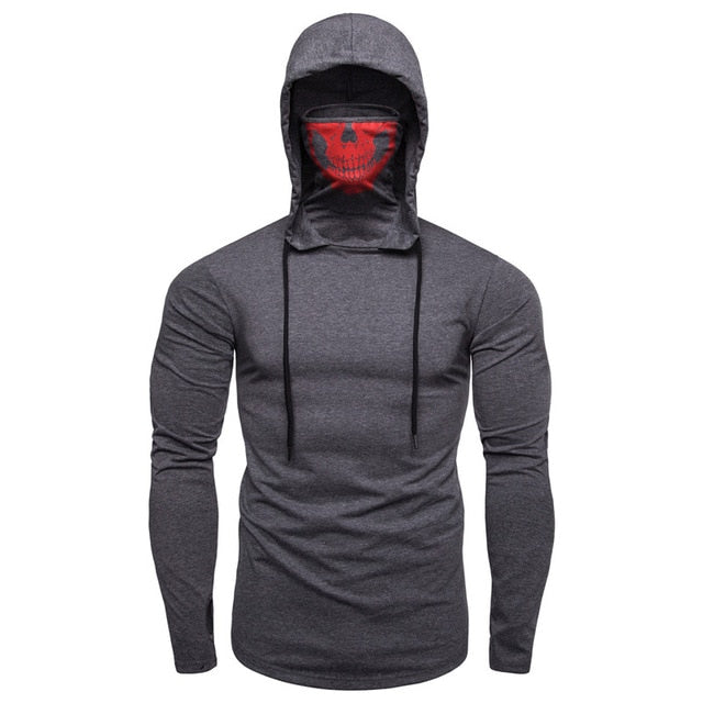 New men's stretch fitness men's ninja uniform hooded long-sleeved T-shirt call of duty skull mask high-quality long-sleeved