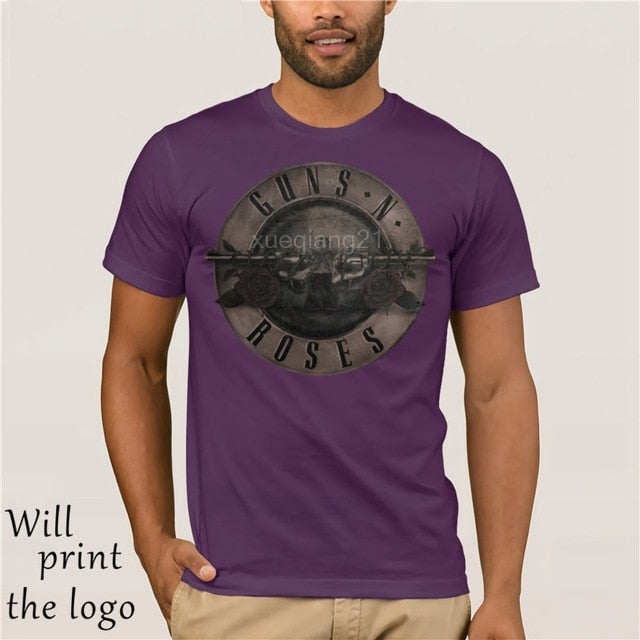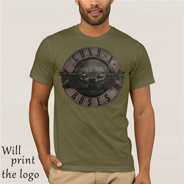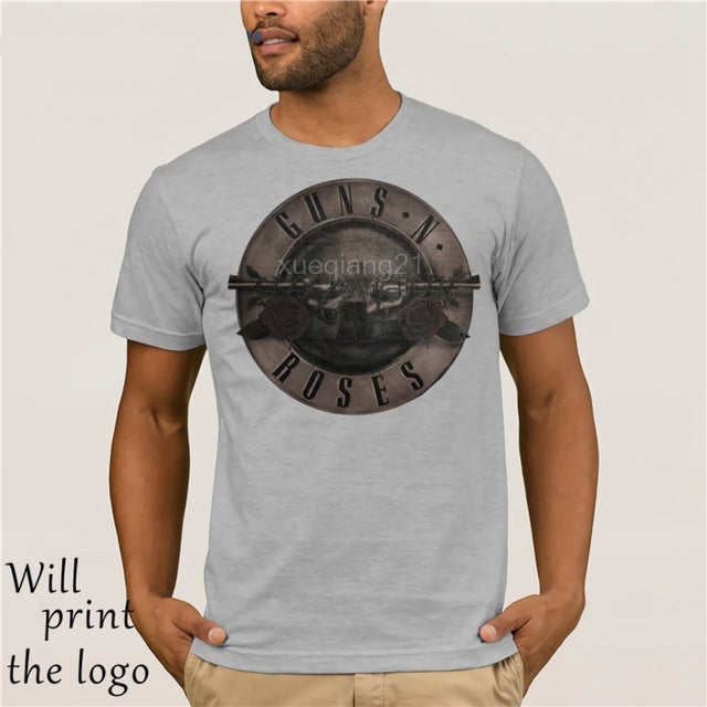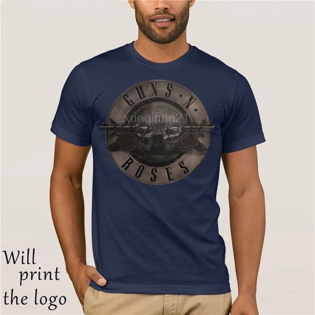 Punk T Shirt Guns N Roses T-Shirt Men Black Tshirt Heavy Metal Tops 100% cotton clothes 3D Gun Rose Print Dress hip Hop