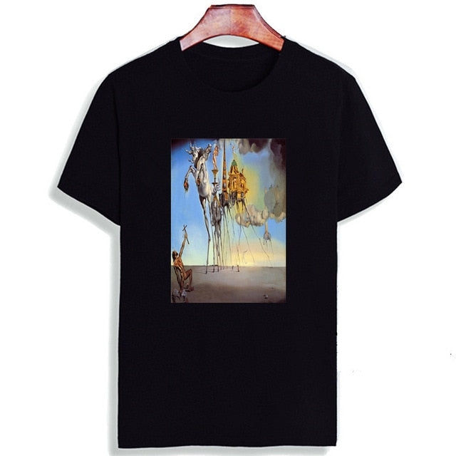 Skipoem Funny T shirt Salvador Dali Surreal Art Cotton O Neck Tshirt Plus Size Short Sleeve Brand T-Shirt Tops
