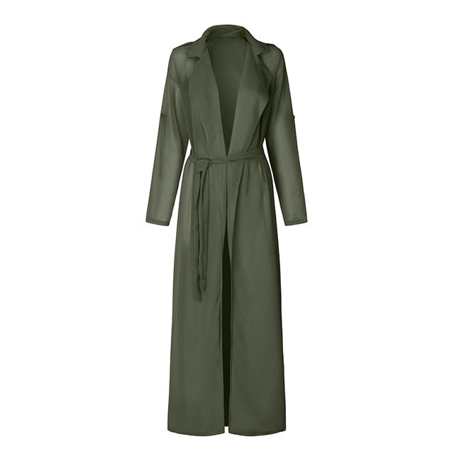 Summer Women Chiffon Cardigan Long Sleeve Sexy See-Through Ladies Lapel Long Jacket Blouse Shirt Beach Cover Up Femme Outerwear