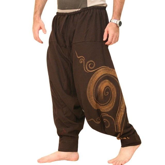 Unisex Loose Drop Crotch Floral Joggers Aladdin Harem Trousers Pants pantalon Harem Pants With Drawstring Casual Loose Plus Size