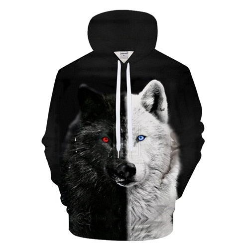 Ying and Yang Wolf Hoodies Streetwear Sweatshirt Casual Hoody Men 3D Pullover Harajuku Tracksuit Male HipHop DropShip ZOOTOPBEAR